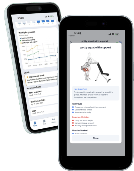 SpotMate remembers your injuries, preferences, and progress. Every conversation builds a deeper understanding of who you are and what you need.